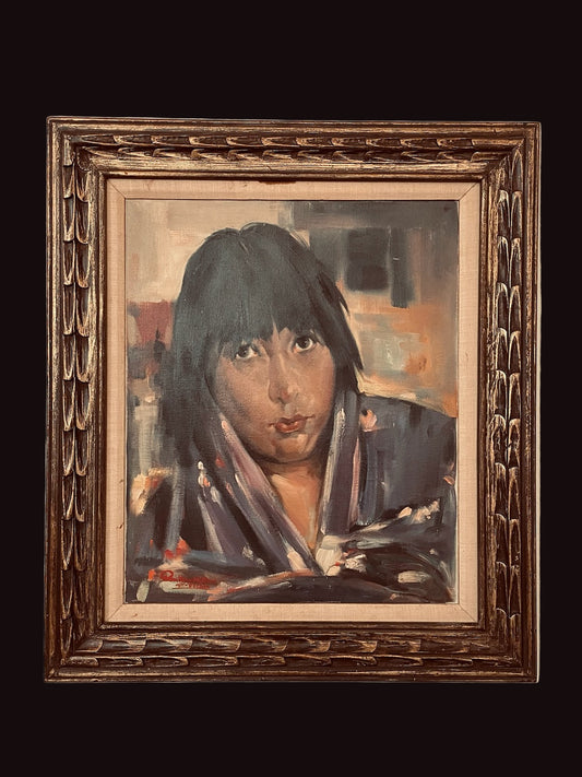After Fechin Portrait Indian Girl With Blue Shawl Oil On Canvas Signed Don Macmillan