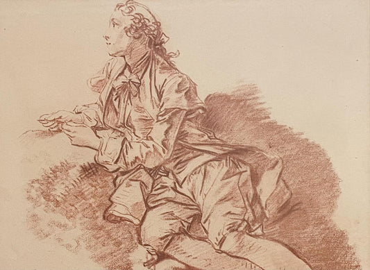 After Francois Boucher Young Man Sitting On The Ground French Lithograph