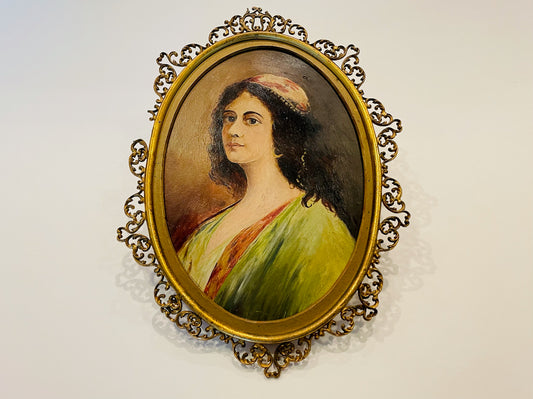 Alice Maude Barnes Florentine Girl Signed Portrait Painting On Panel