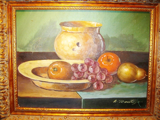 A Montoya Still Life Fruit Plate Signed Oil On Canvas
