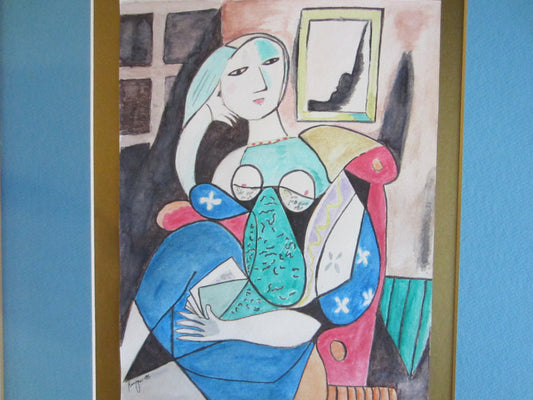 ANDRE Expressionist Two stylized Abstract Figures Signed Watercolor Original Frame