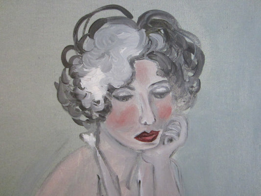 A Seated Modern Woman Portrait Oil On Canvas Artists Monogram