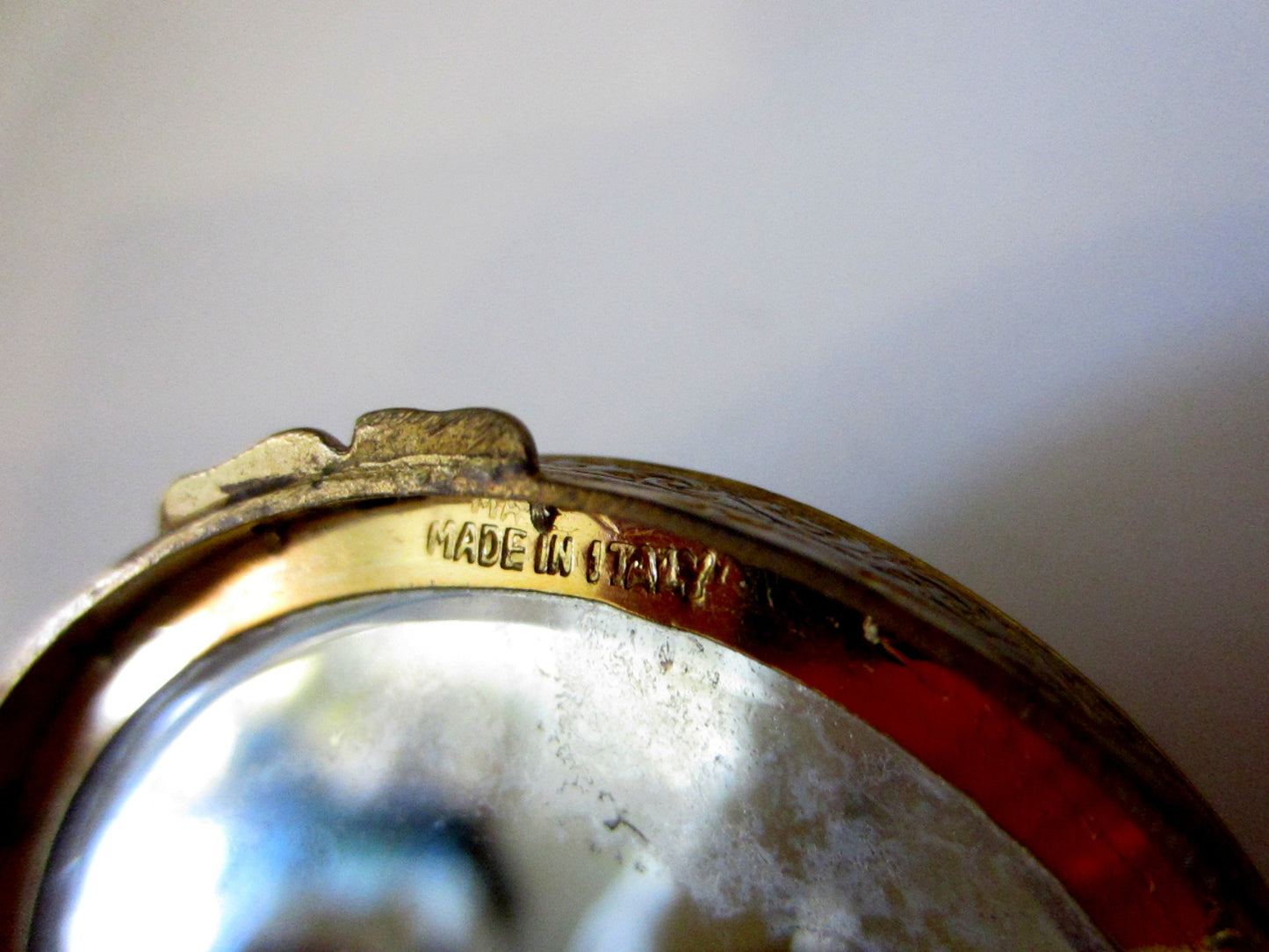 Italian Gilt Bronze Jeweled Champleve Portrait Mirror Compact
