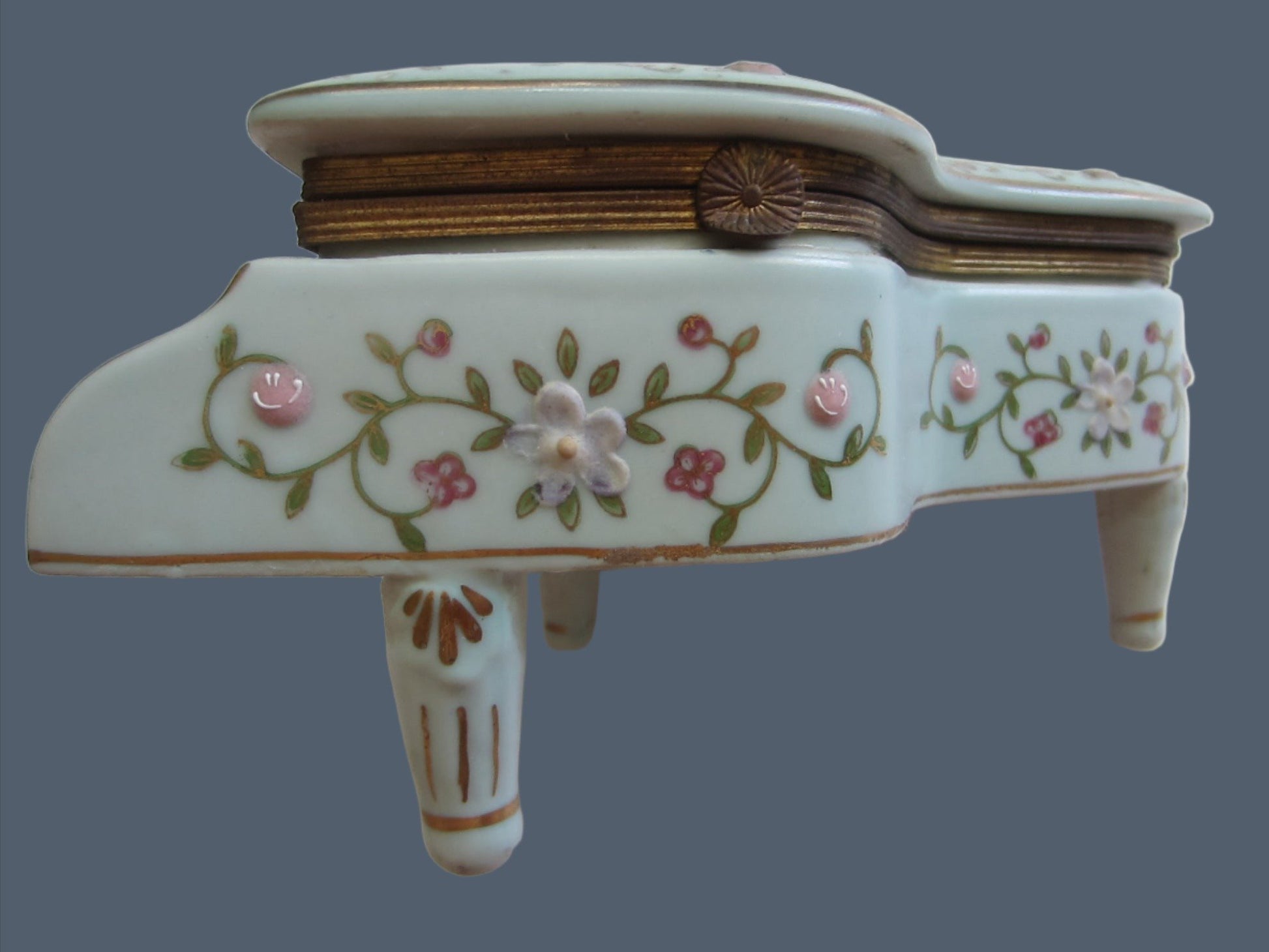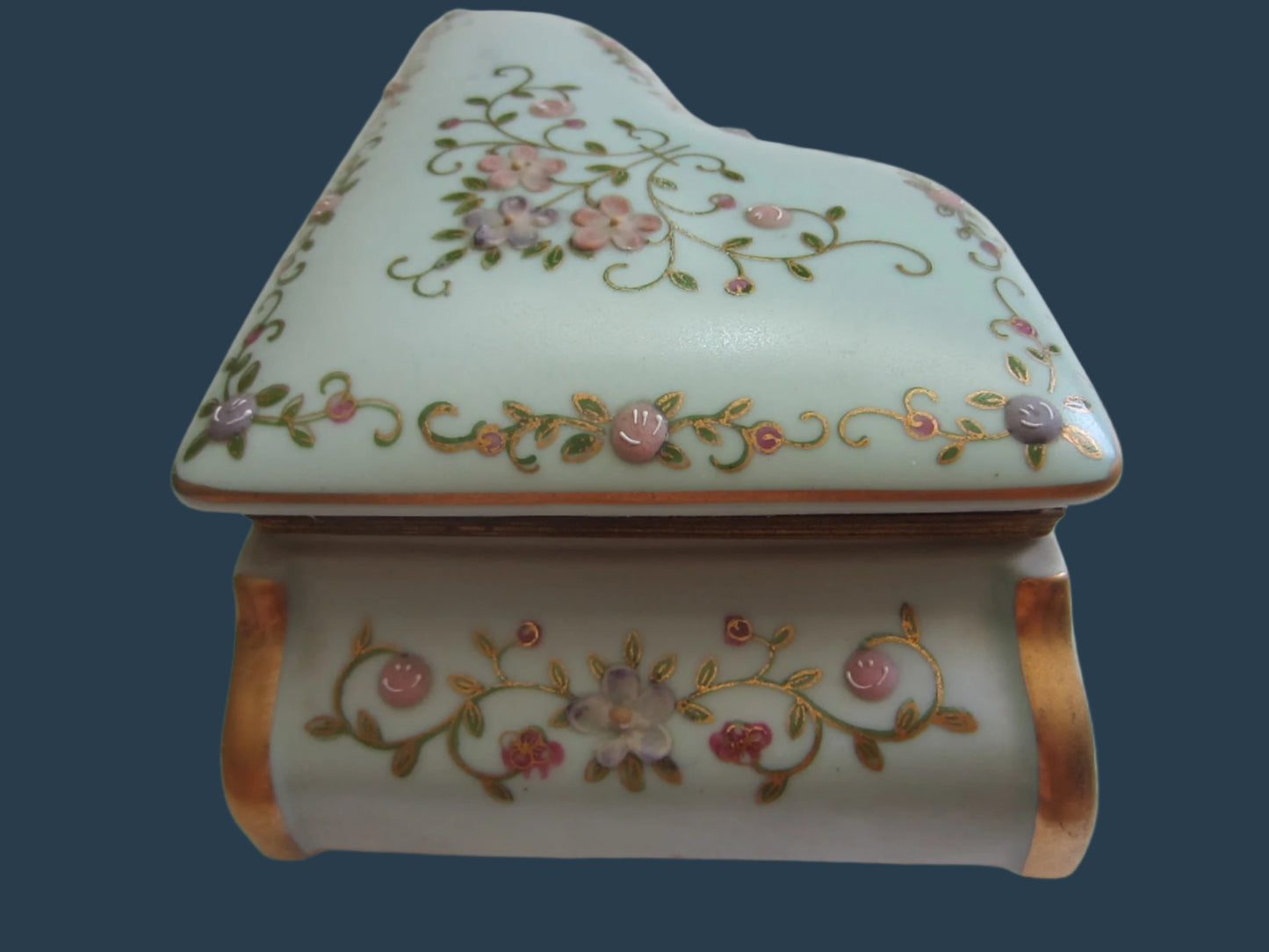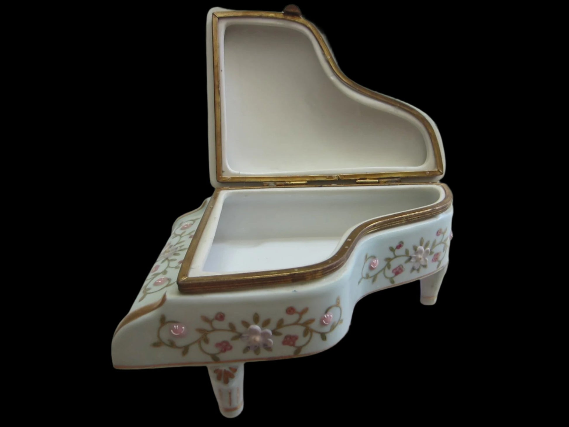 French Style Hand Painted Porcelain Piano Jewelry Box