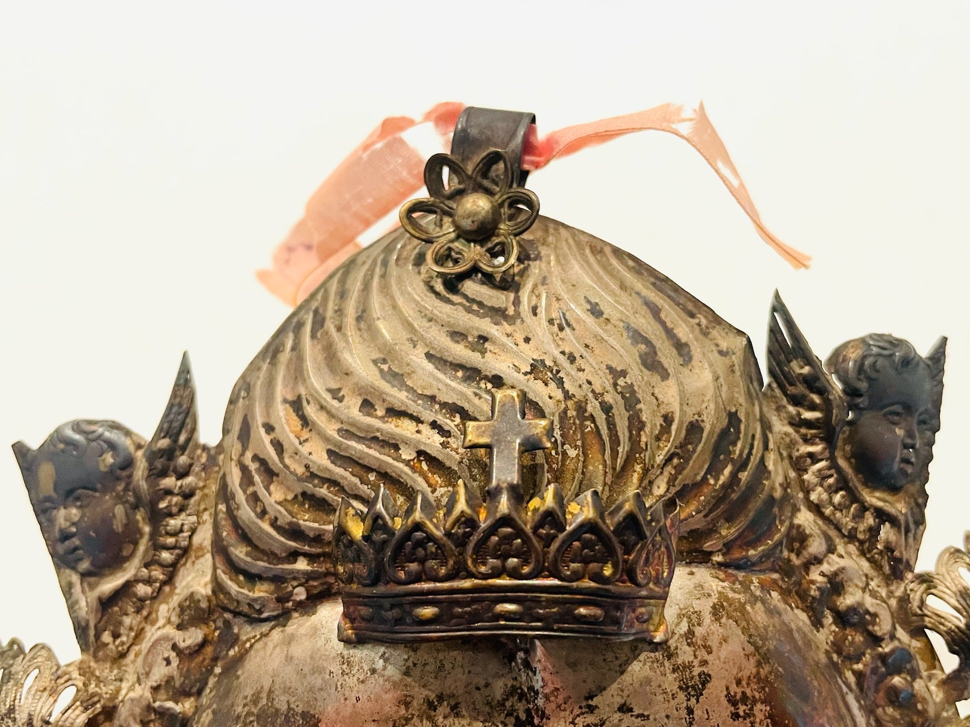 A Silver Plated Antique Ex Voto Sacred Heart Florence Italy