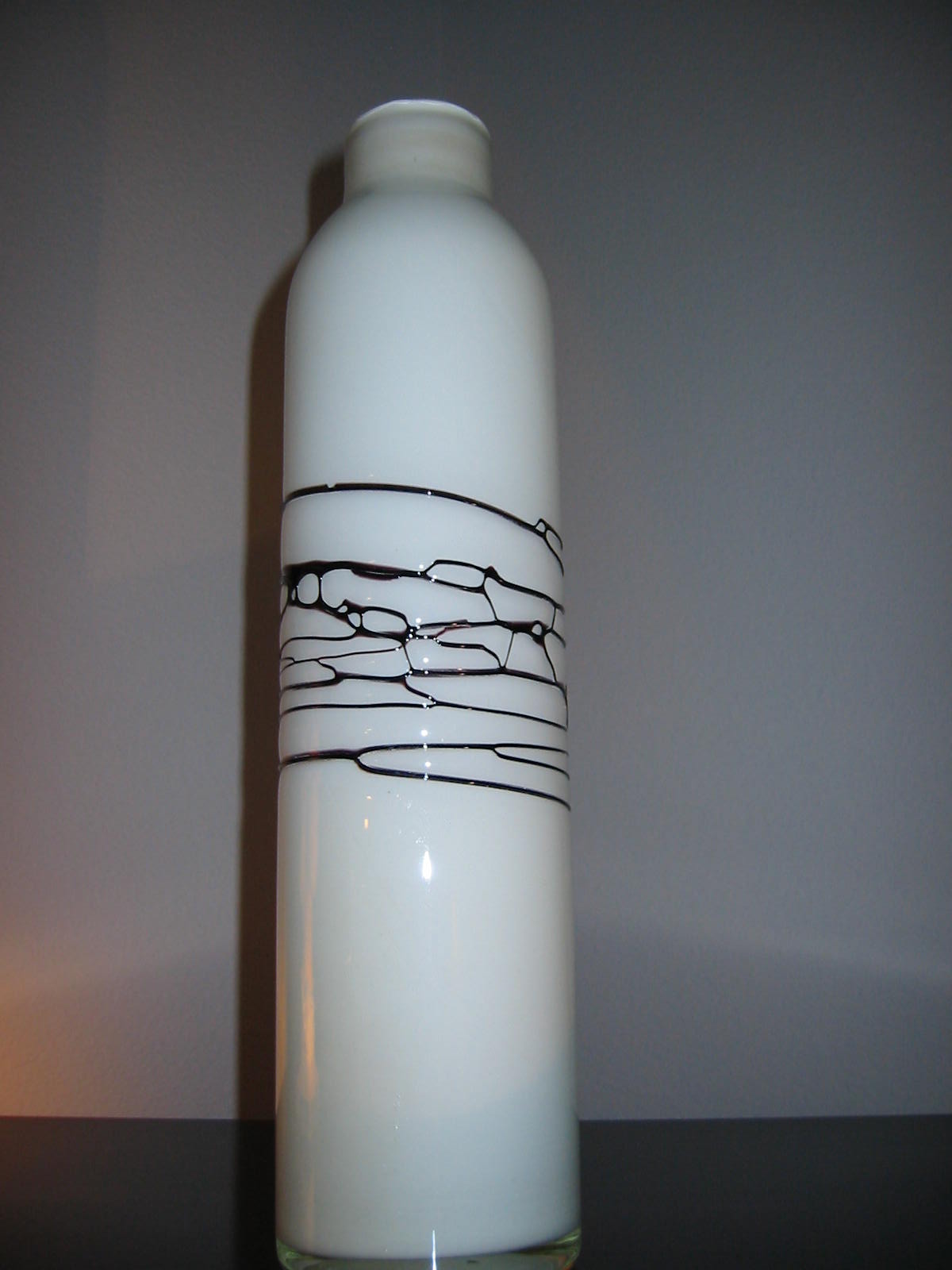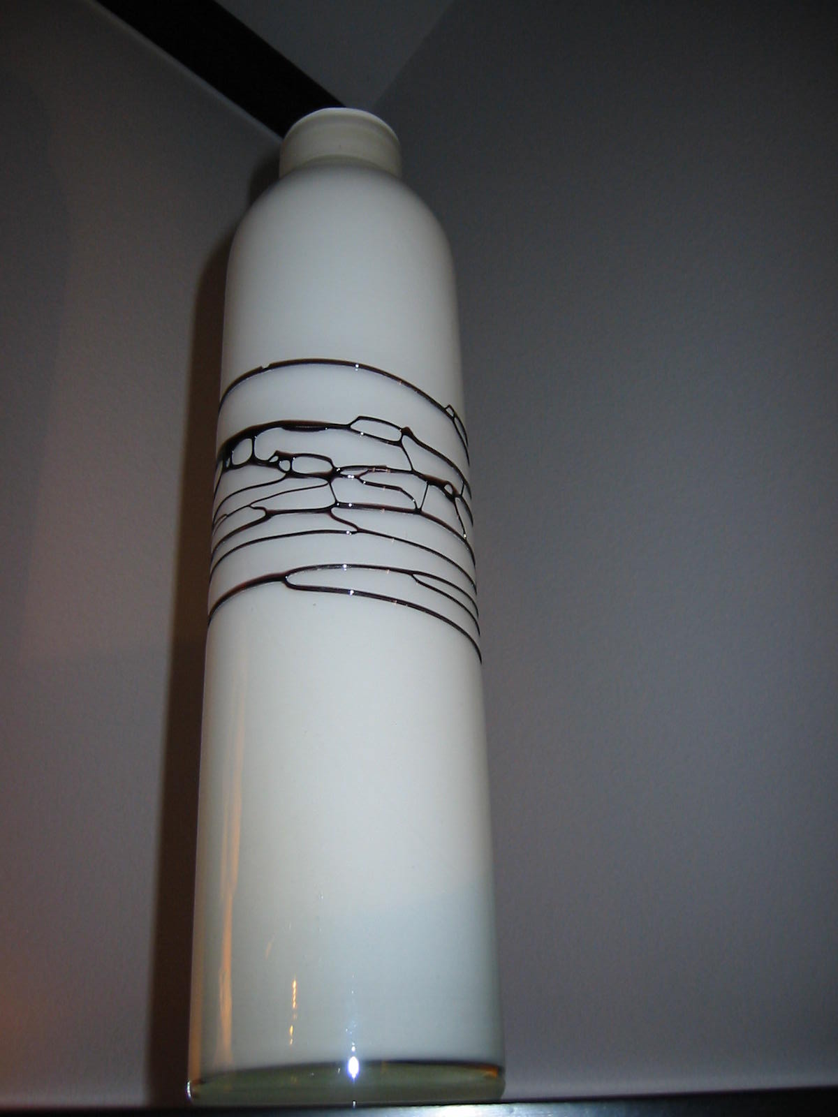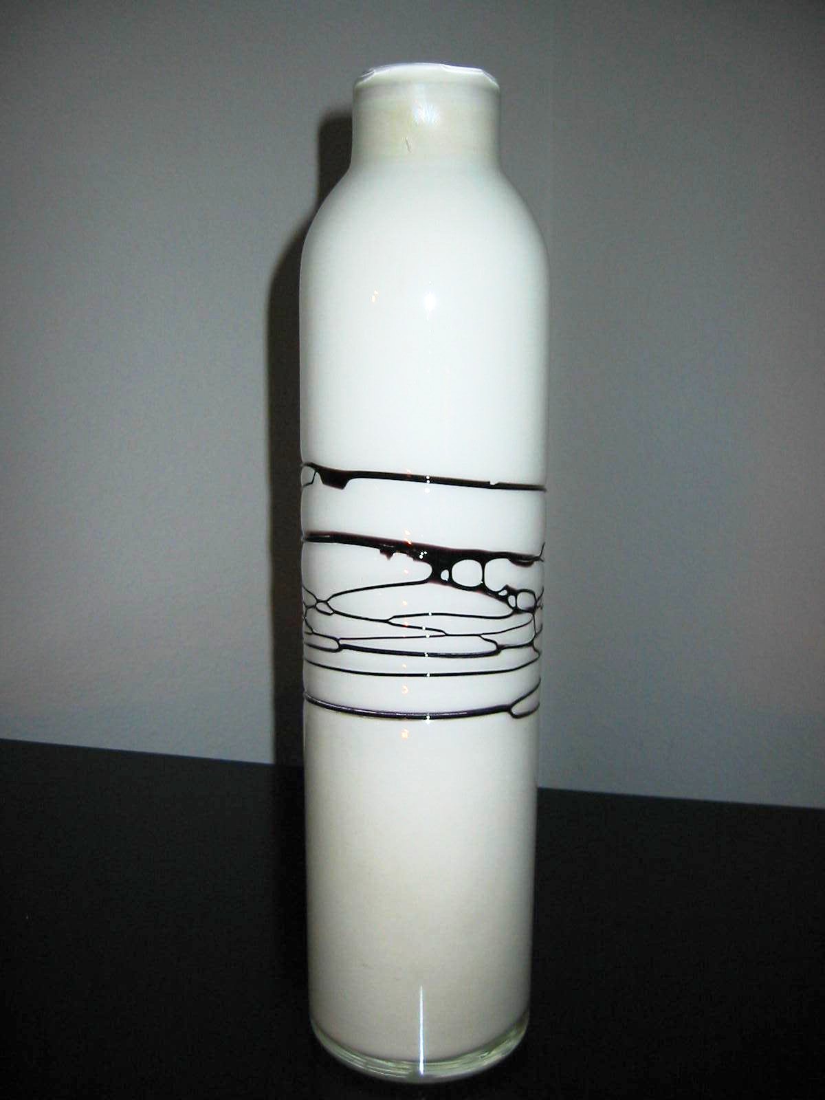 Bottle Shaped Abstract Eggplant Overlay Tall Modern Milk Glass Vase