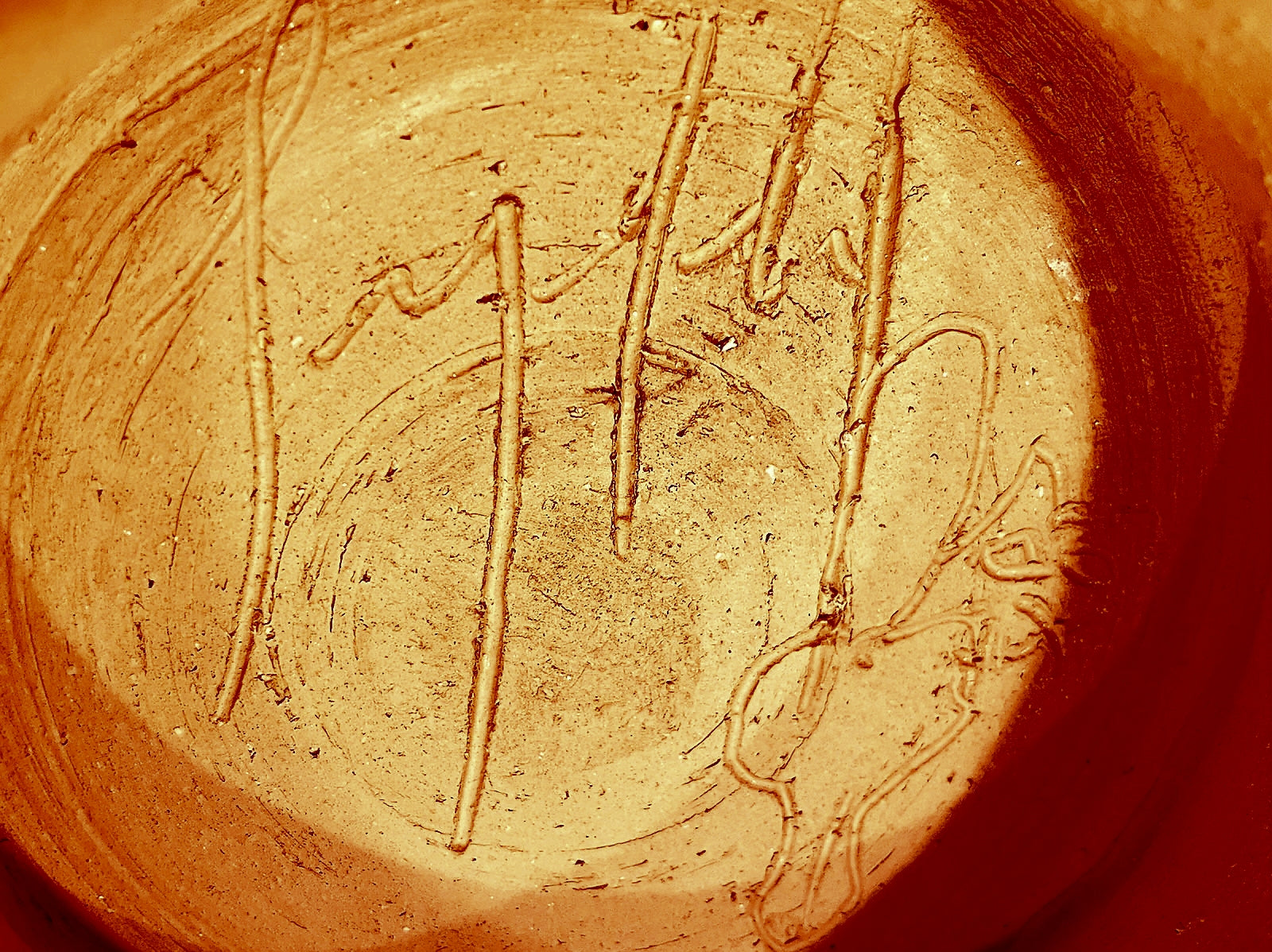 Abstract Terracotta Hand Painted Geometric Portrait Signature Ceramic Bowl