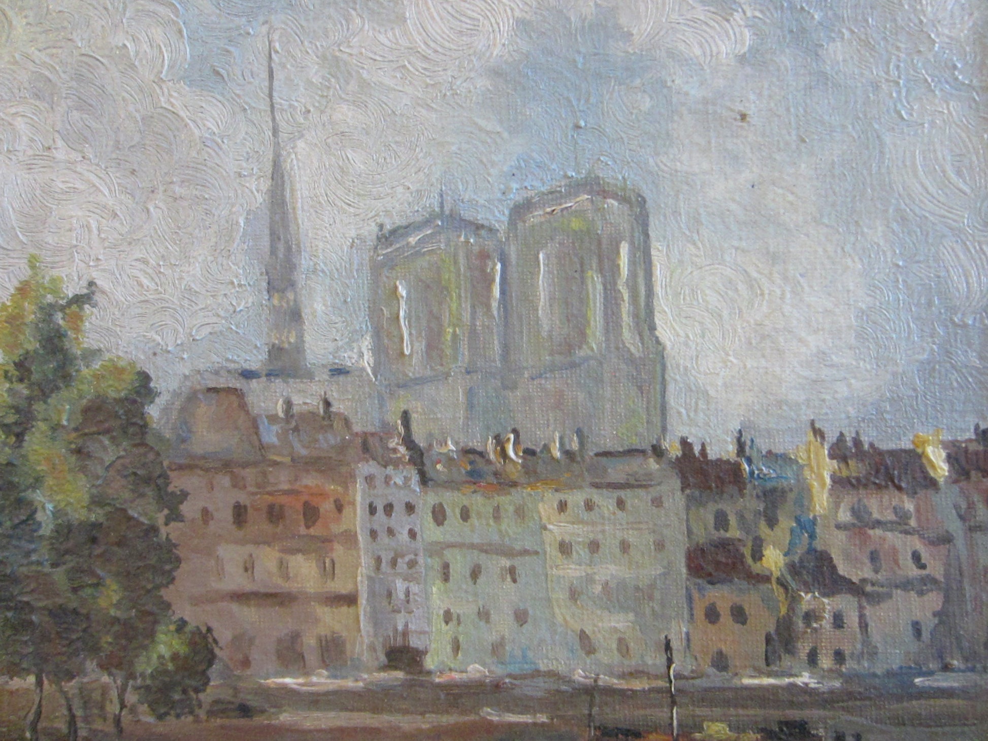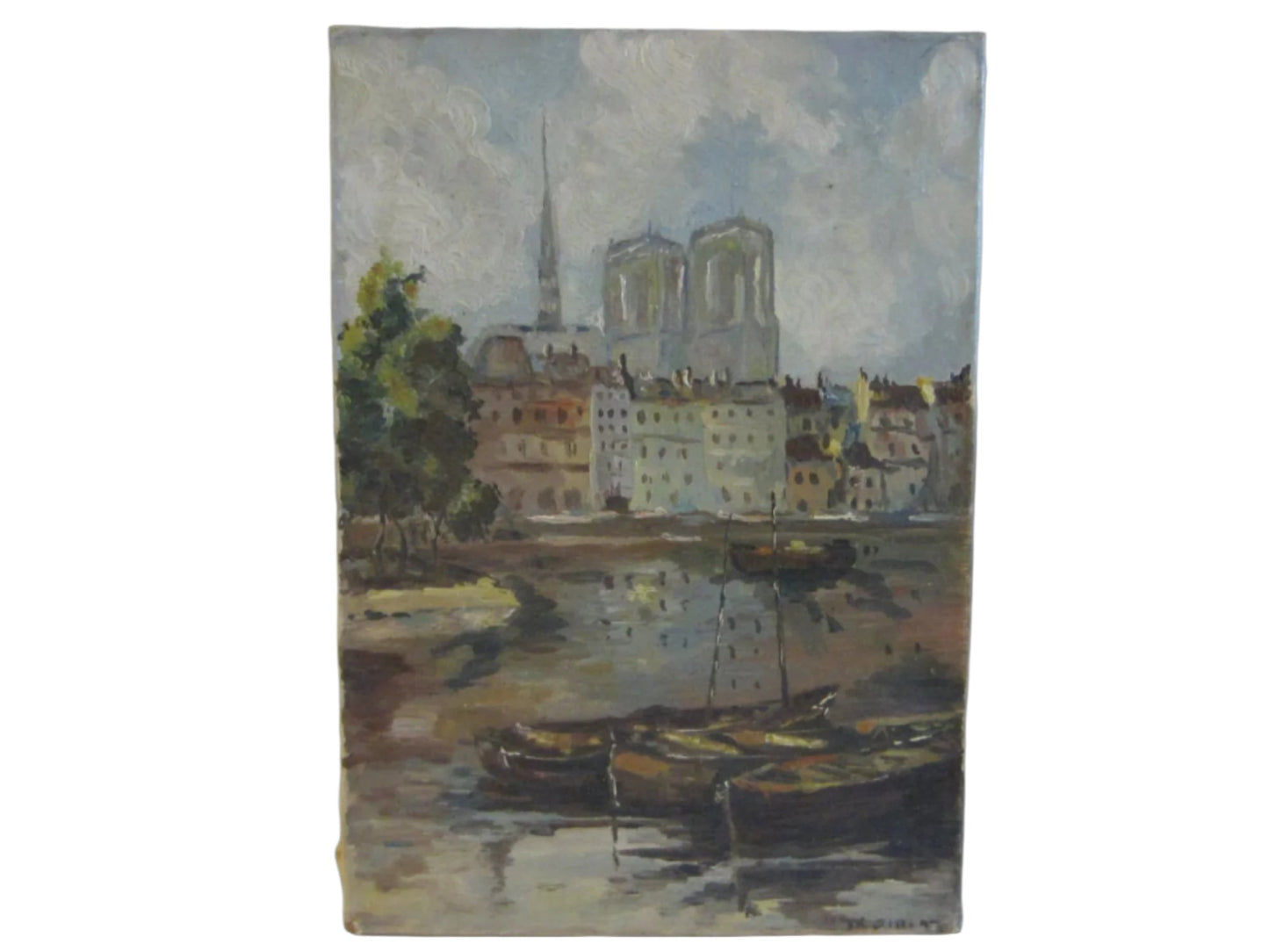 Frame Less - Lower Right Signature on Aged Canvas screwed to the border. 10.5" H. x 7.5"