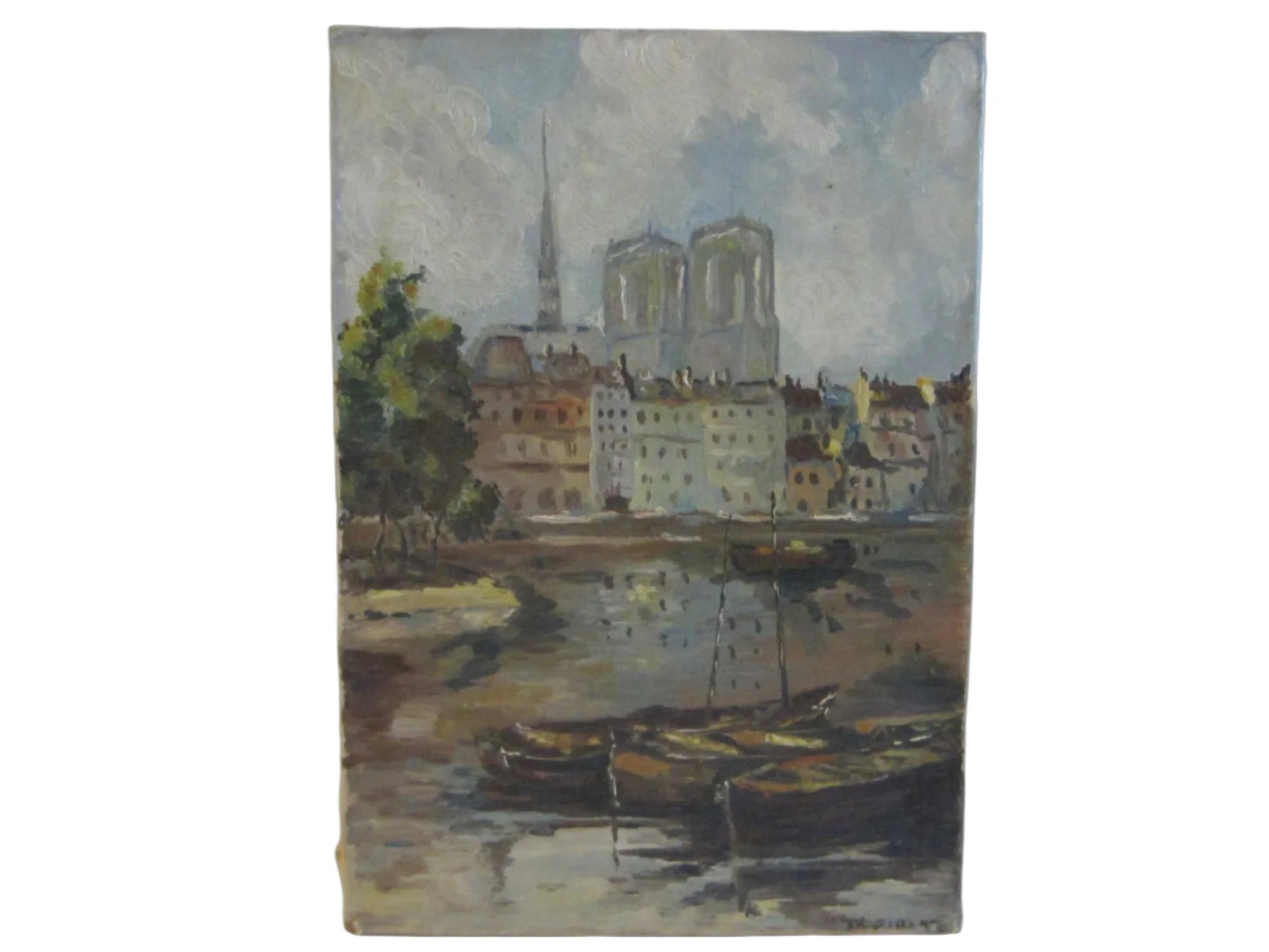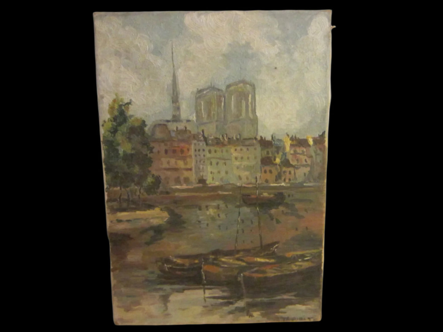 Signed By artist in the lower TK. GIBET right of this gorgeous oil on canvas painting. Inspiring a fabulous architectural scene in Europe in stunning modest colors. Excellent aged, with harbor, boats, green trees, marine & buildings, shore.