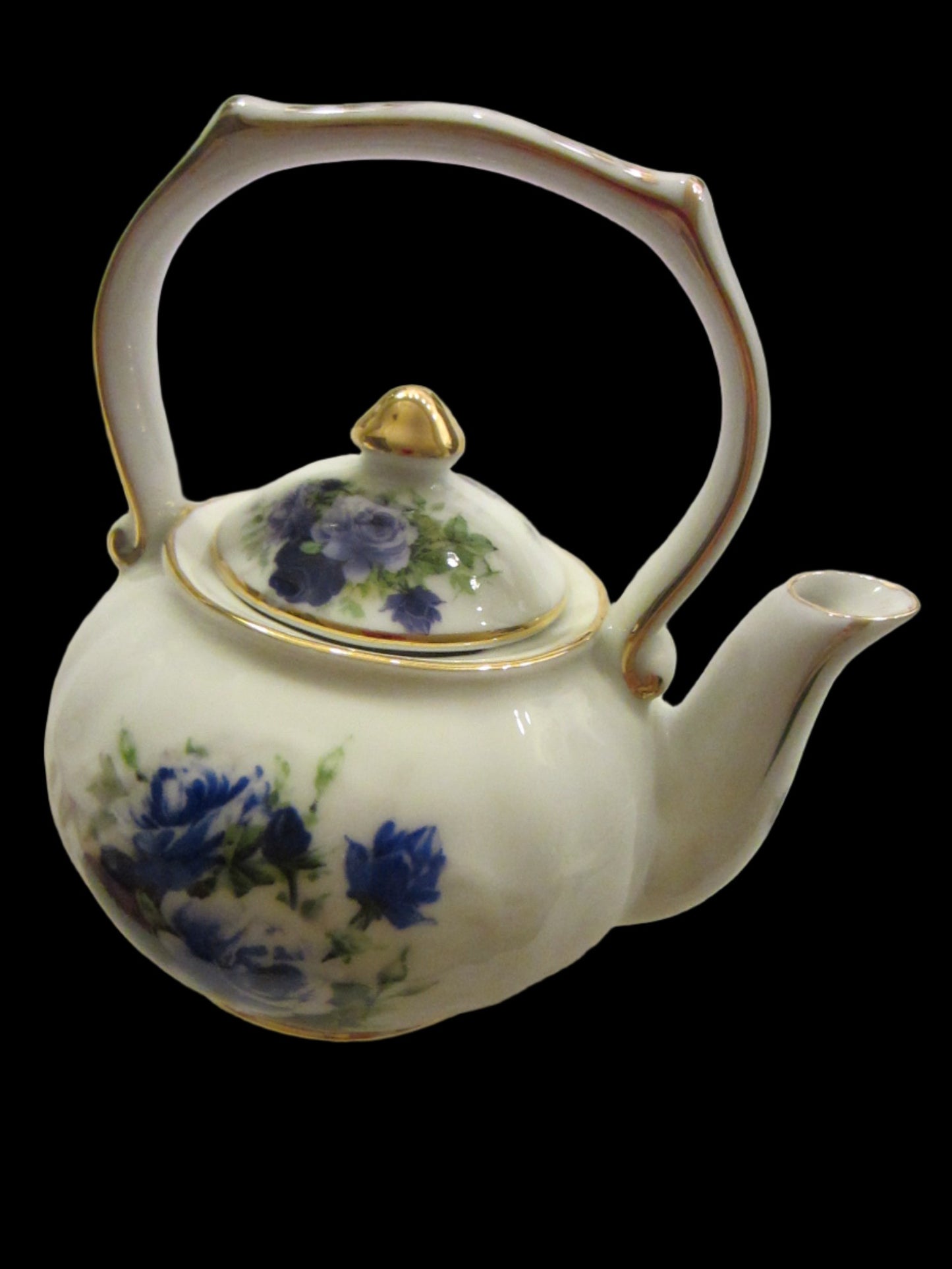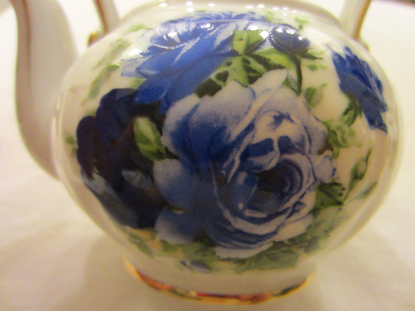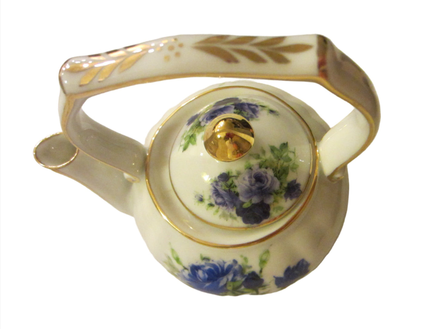 Blue Roses Fine Porcelain Fielder Keepsakes White Teapot Gold Leaf Handle