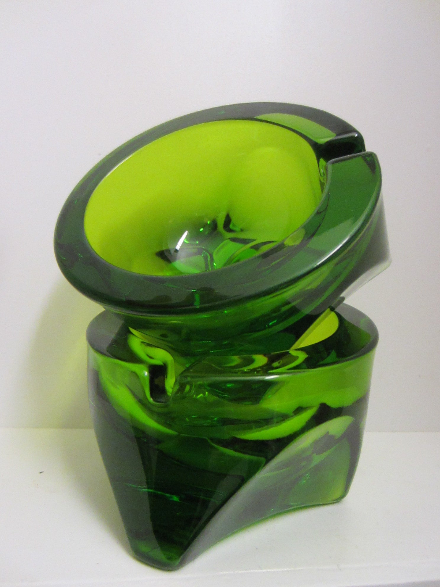 Emerald Green Pair Geometric Glass Mid Century Modern Ashtrays