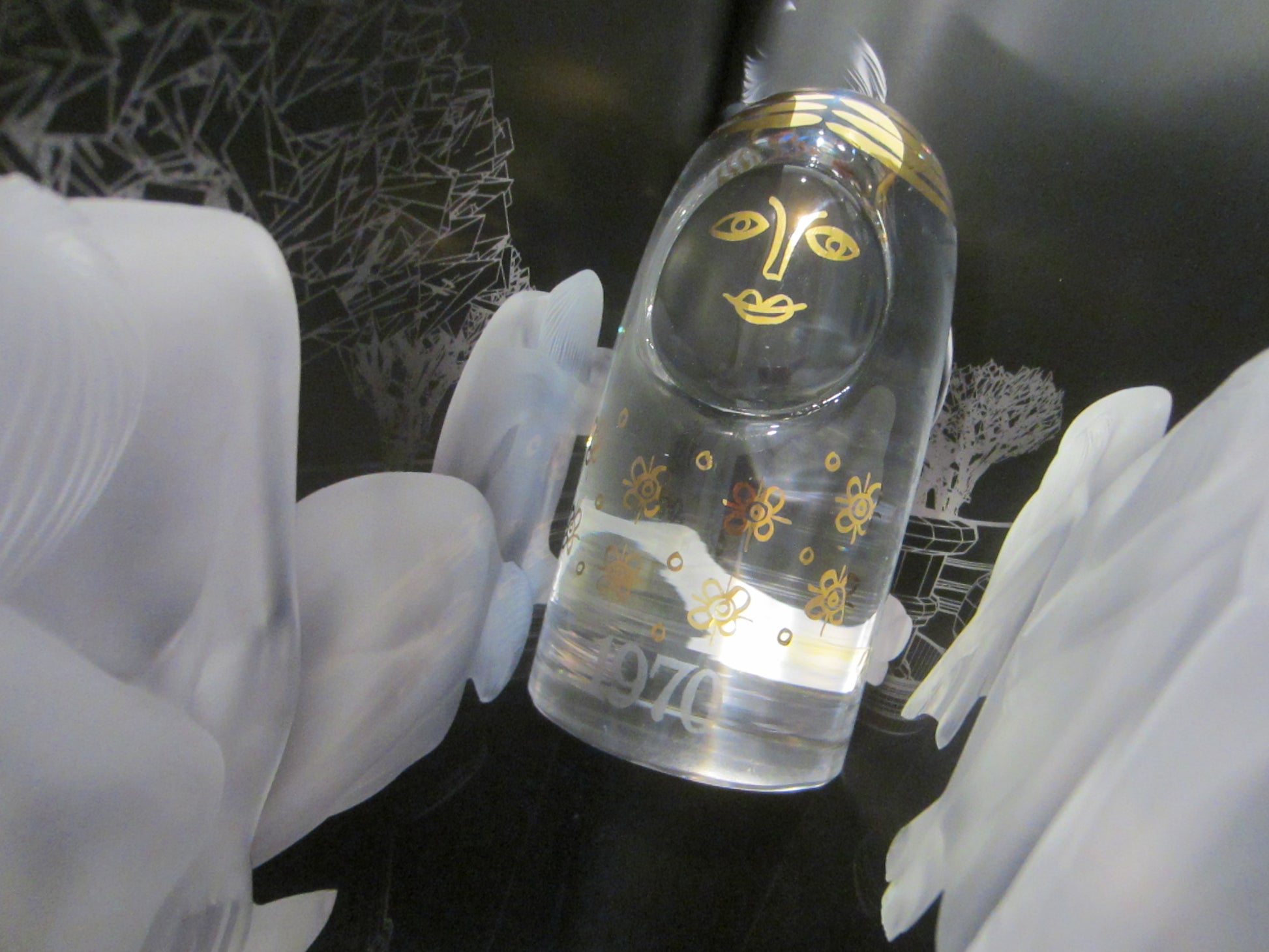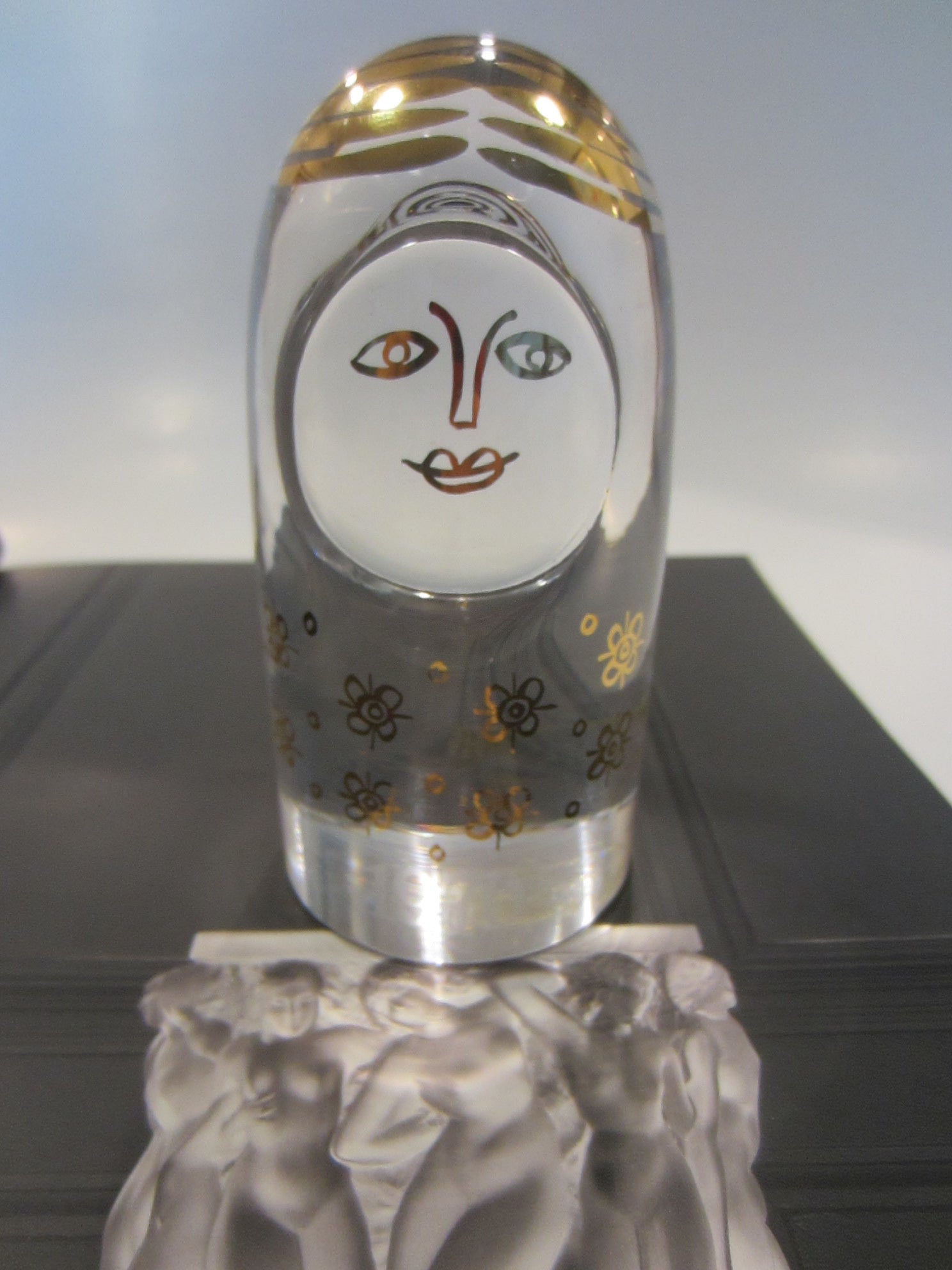 Created and signed, dated, in 1990's. The gorgeous Mother inspires of 1970's, by Kosta Boda Sweden Artist. This heavy glass paperweight, inspires abstract figure of Mother, and is a perfect decoration conversation piece. Excellent , almost superb condition, and inspiring. This gorgeous abstract figure painted and decorated with gold accents and floral design. Extremely heavy. It also has clear label which is unclear on the images. Not readable. The Signature on the bottom is in etching, and the date indicates 1990, and all painted with gold.