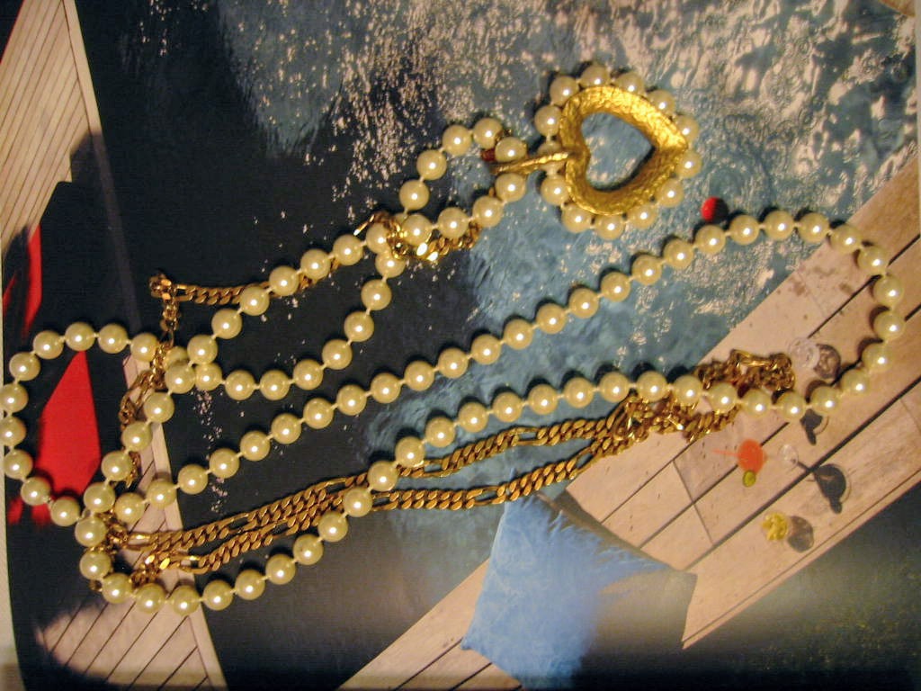 I transformed and collaborated vintage hand knotted 34" white pearl beads, brass heart pendant pearls decorated, and golden Monet link chain with name tag . excellent condition. it looks jazzy, with modern twist, little black dress or jeans. 2.5" x 1.5" x 28".