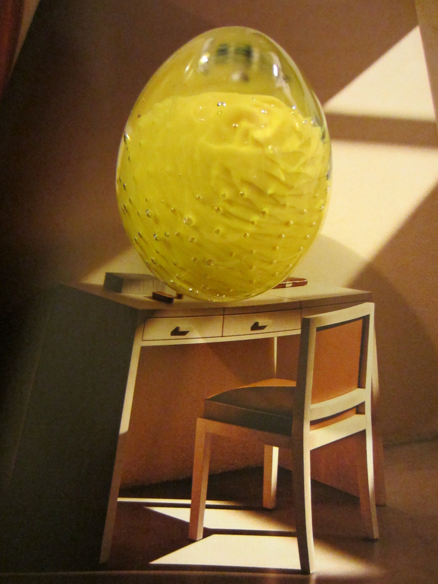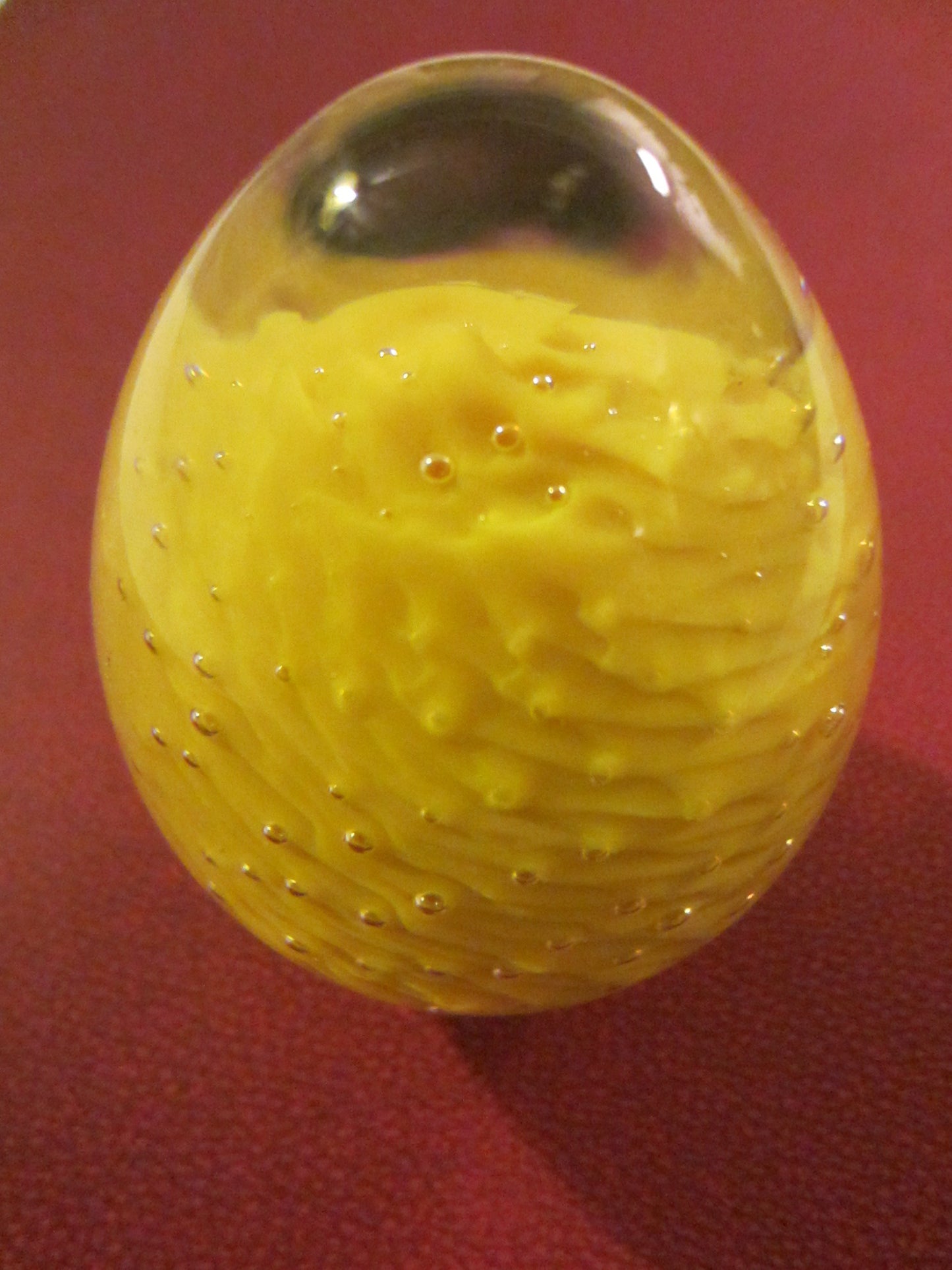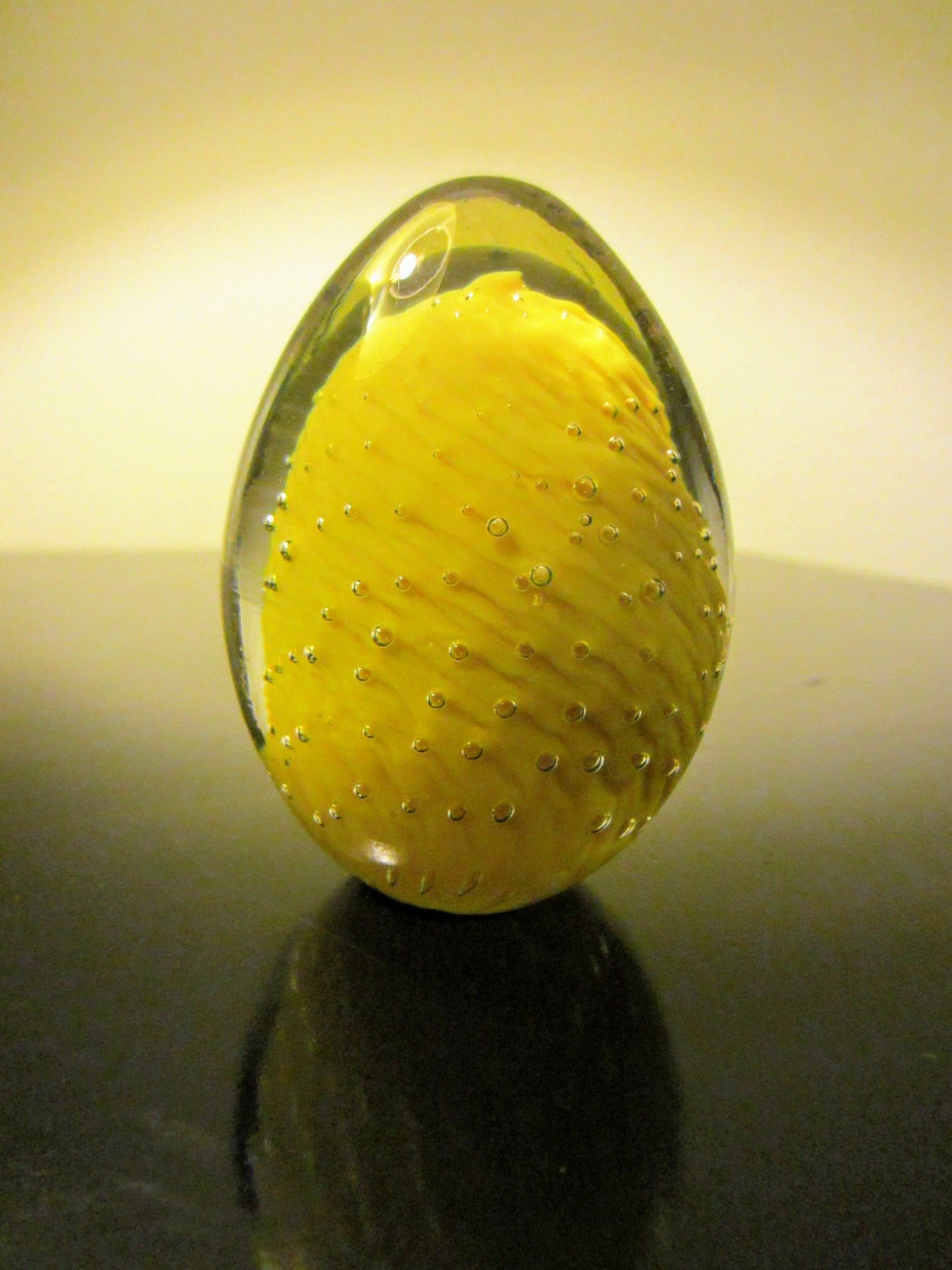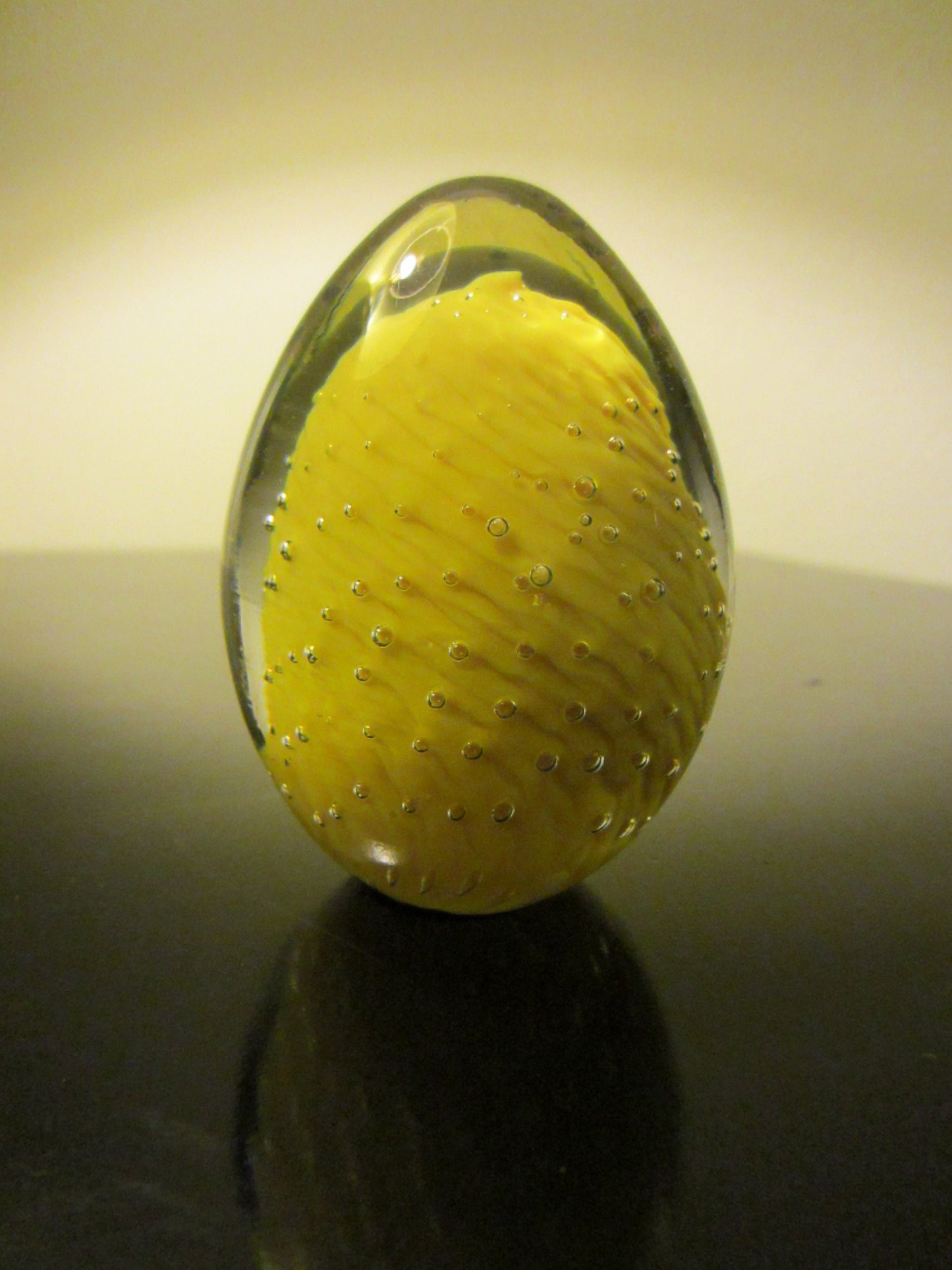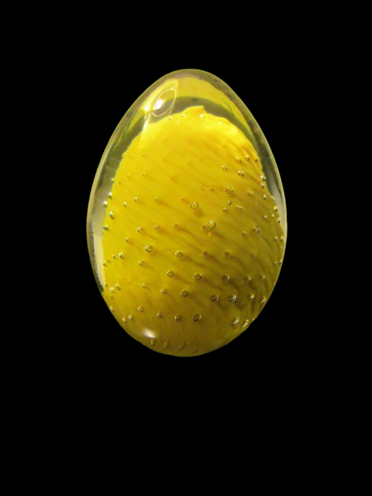 Murano Yellow Glass Egg Controlled Bubbles Paperweight