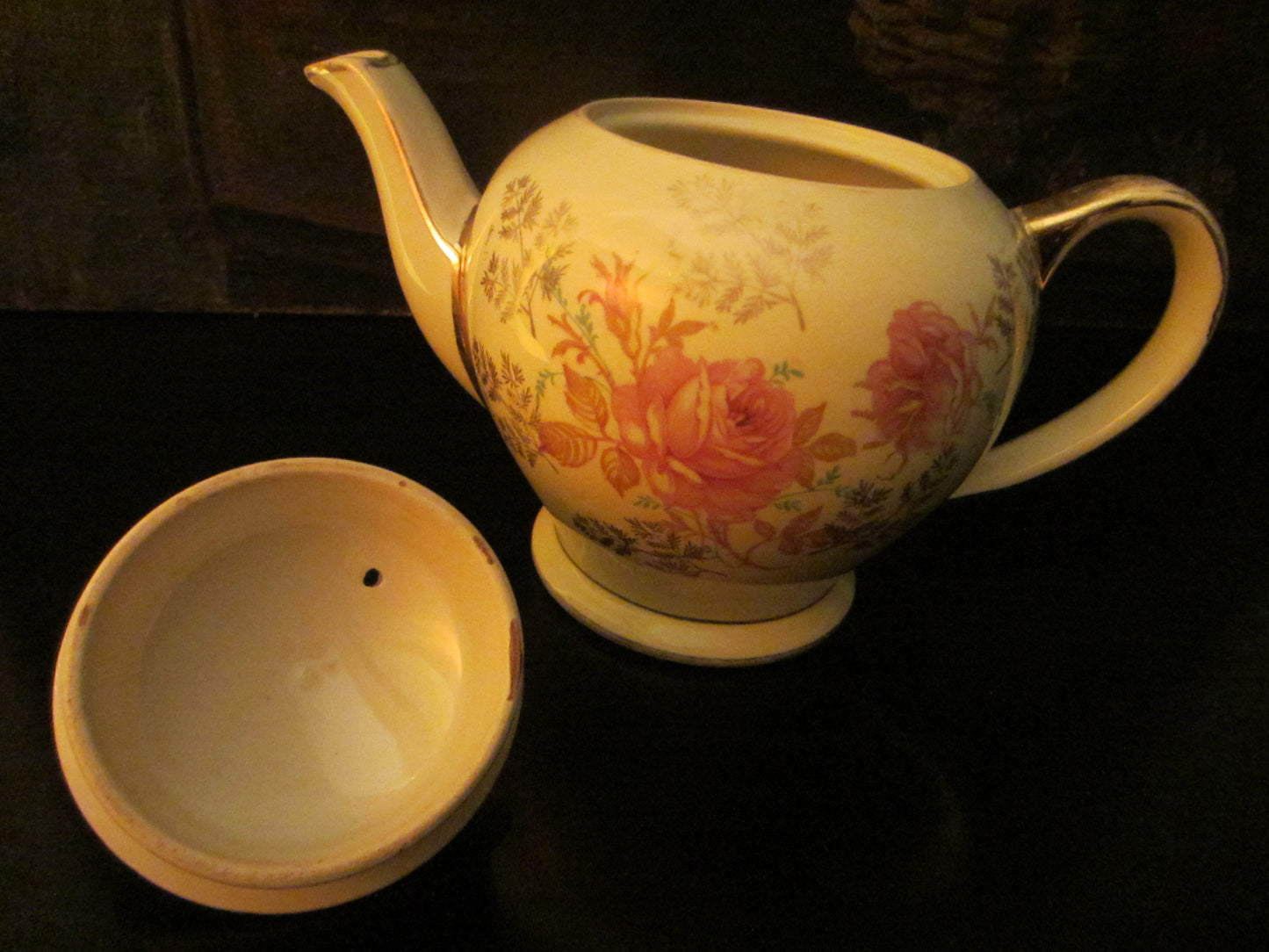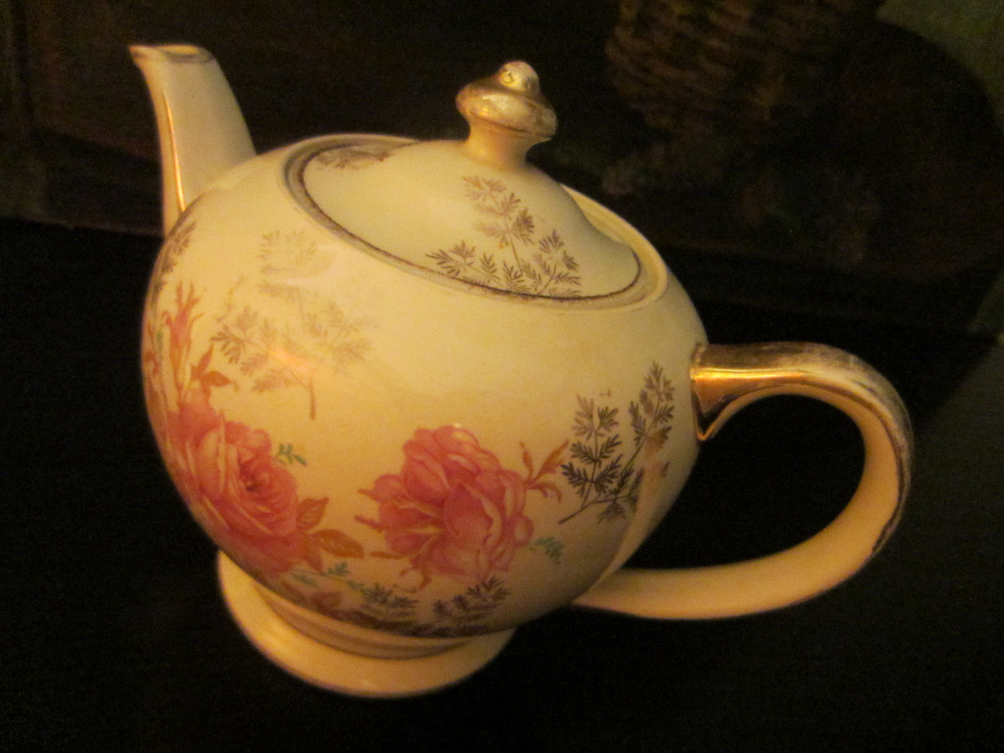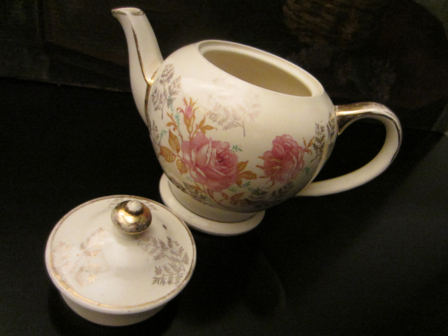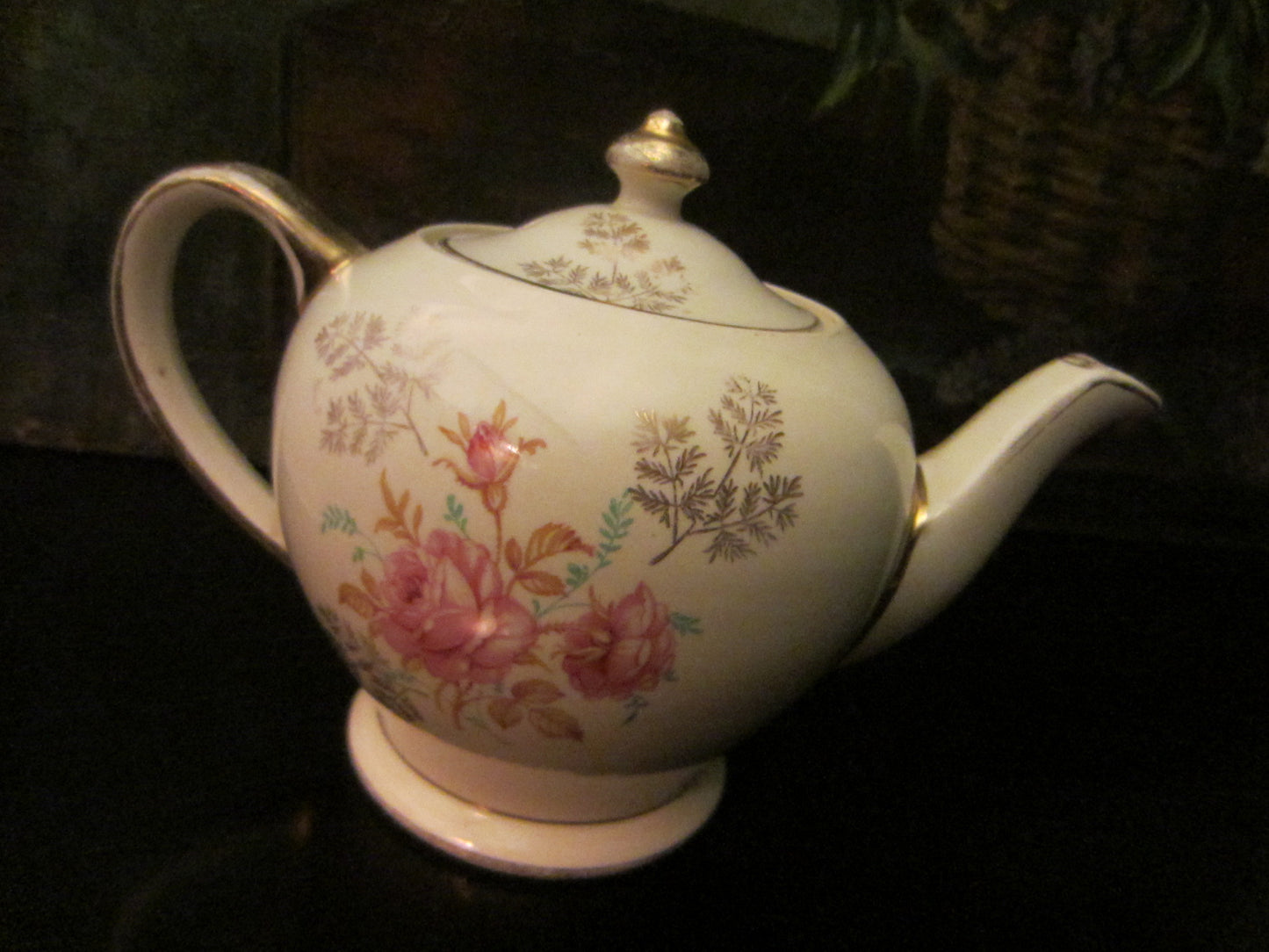 Sadler England Teapot Gilt Decorated Pink Flowers JE Initial