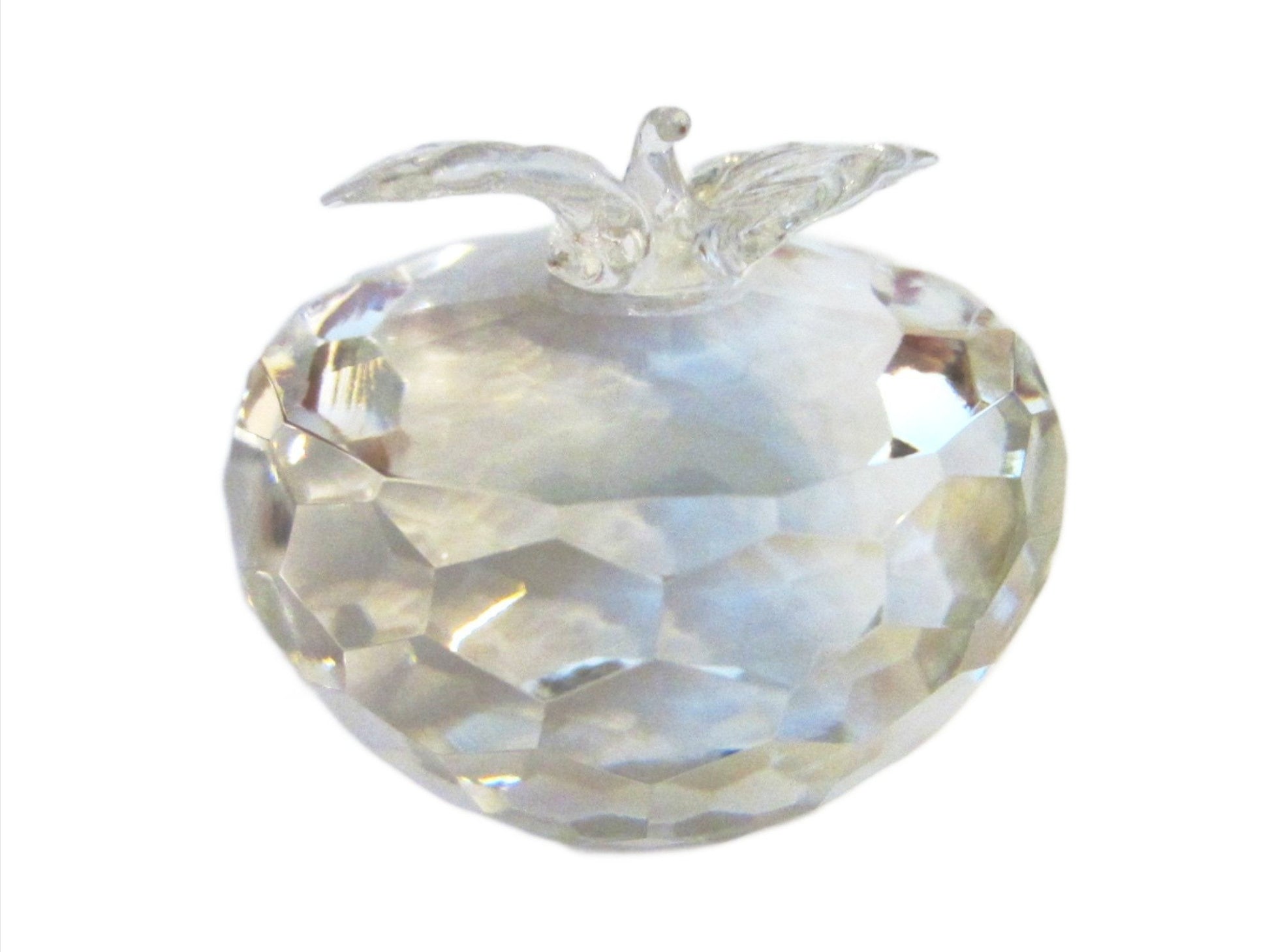 Beautiful cut, a symmetric leaves stemmed Swarovski apple paperweight, in amazing execution. Glowing, shine, fabulous aged condition. 3" in dimension. Geometric cuts are incredible. This object Is Untitled (No Signature , No Marking). Thank you for viewing!