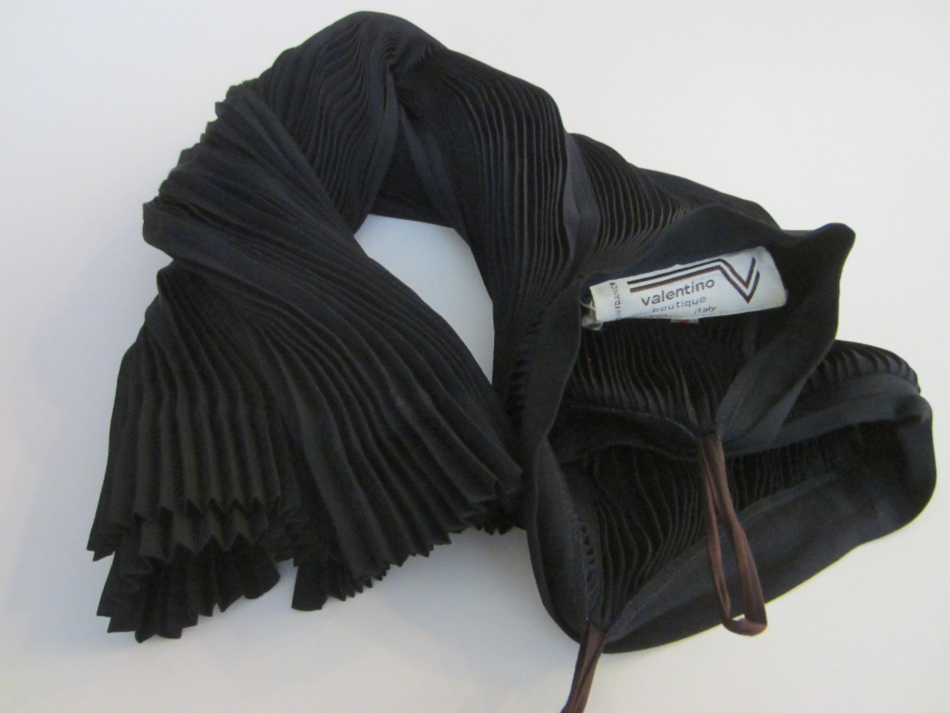 Valentino Couture Vintage Black Pleated Silk Skirt Made in France