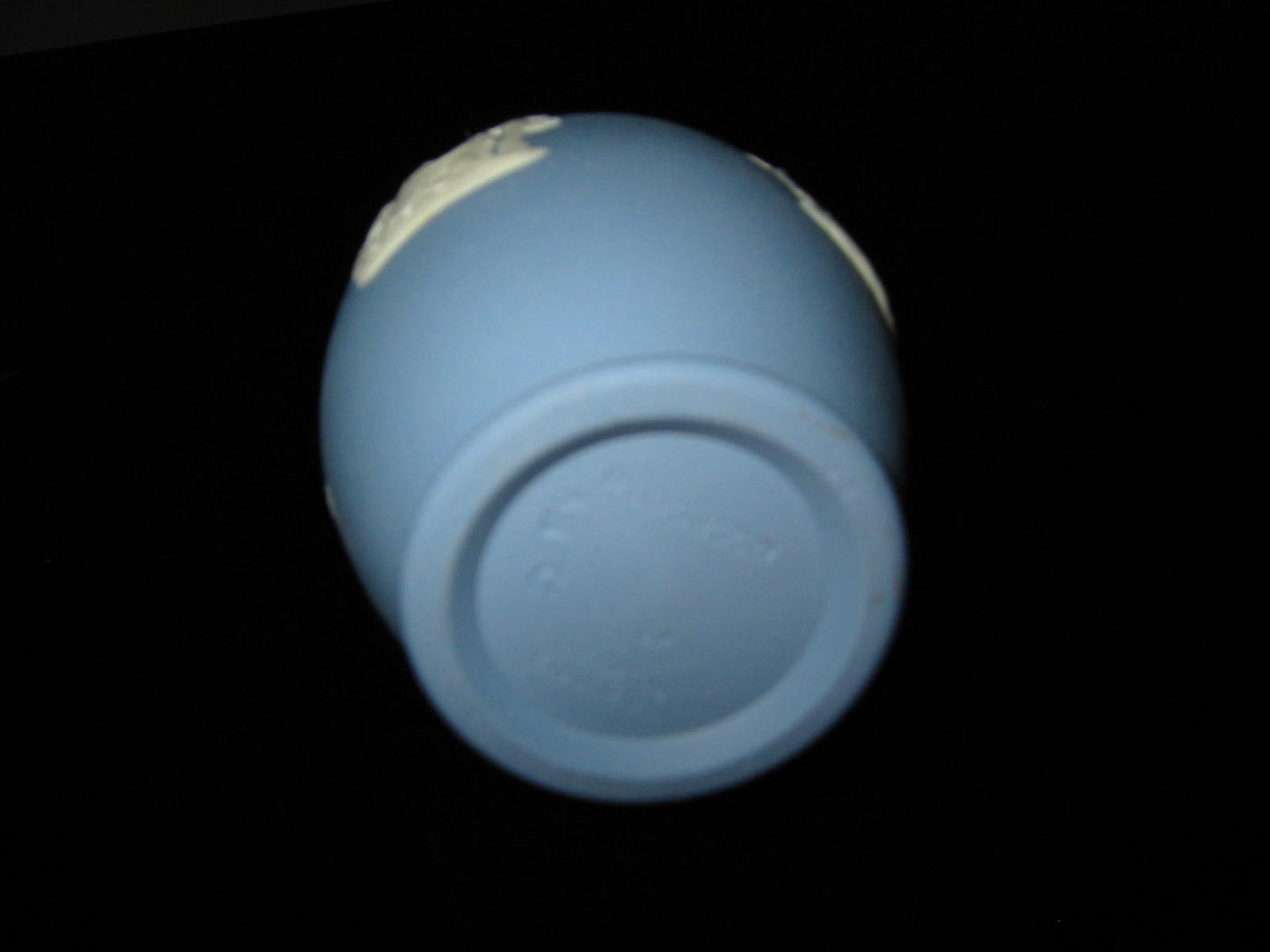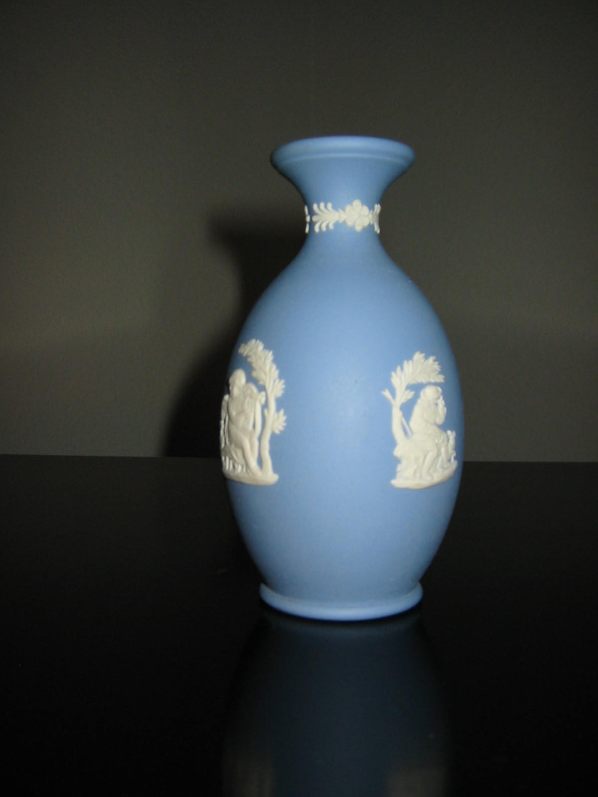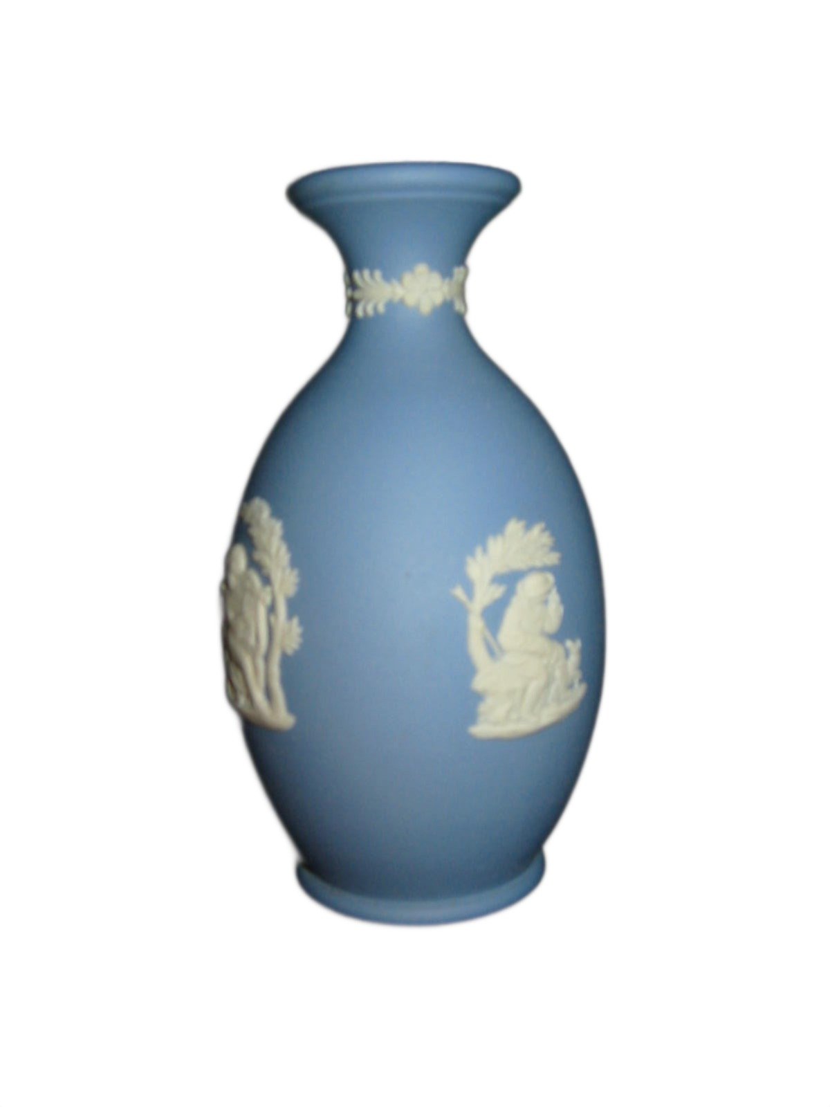 Wedgwood England Blue Jasper Vase White Medallions Bass Relief